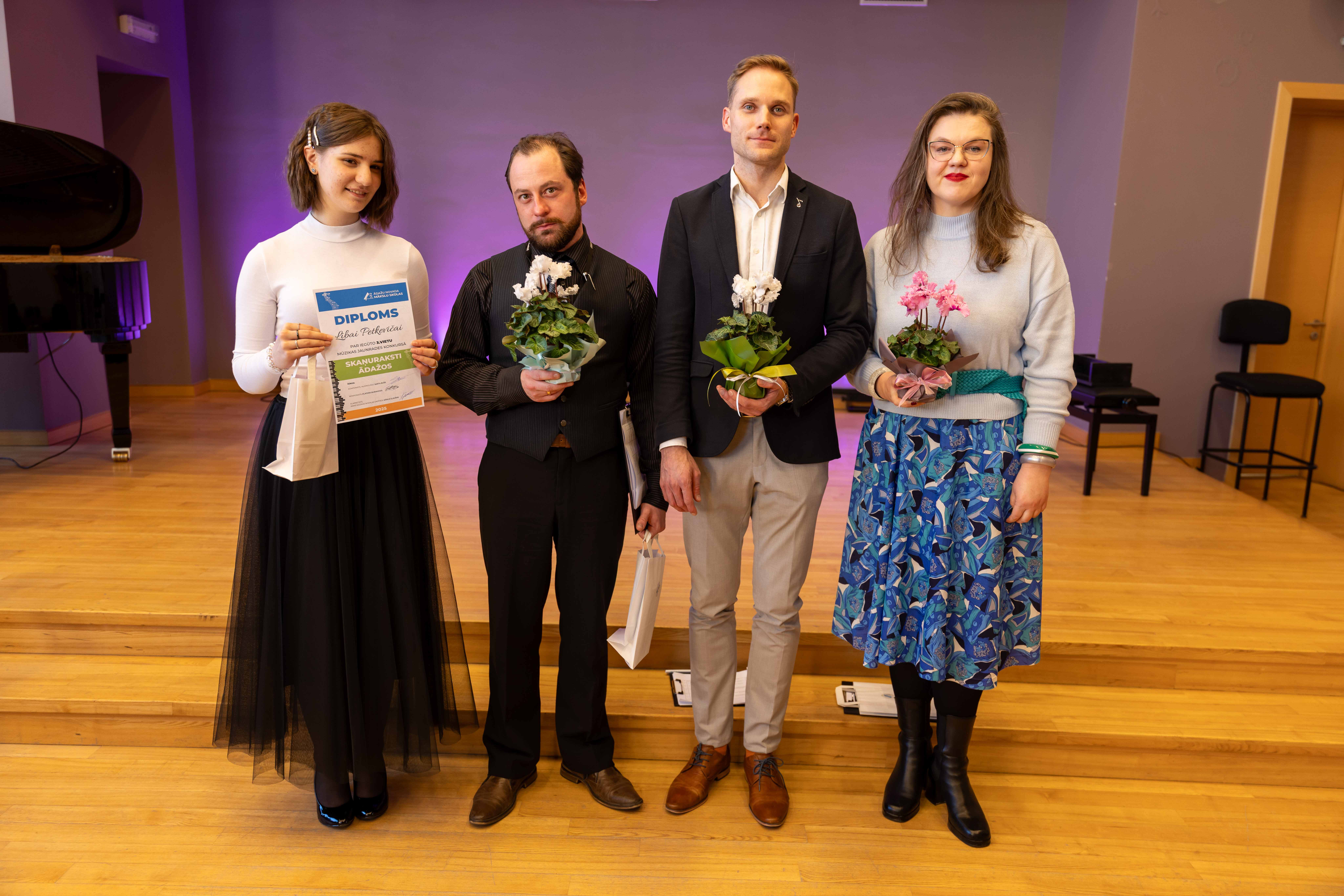 Paldies skolotājiem - Marinai Gribinčikai, Andrim Dzenītim, Edgaram Cīrulim, Fricim Hugo Pērkonam (PIKC NMV Emīla Dārziņa Mūzikas skola), Ernestam Vilsonam (Jāzepa Mediņa Rīgas Mūzikas vidusskola), Antrai Šķēlei (Ventspils novada Piltenes mūzikas skola), Dacei Vilkastei (Grobiņas Mūzikas un mākslas skola), Lindai Dambergai (Babītes Mūzikas skola), Staņislavam Semjonovam (Ikšķiles Mūzikas un mākslas skola) un Annai Veismanei (Ādažu novada Mākslu skola).